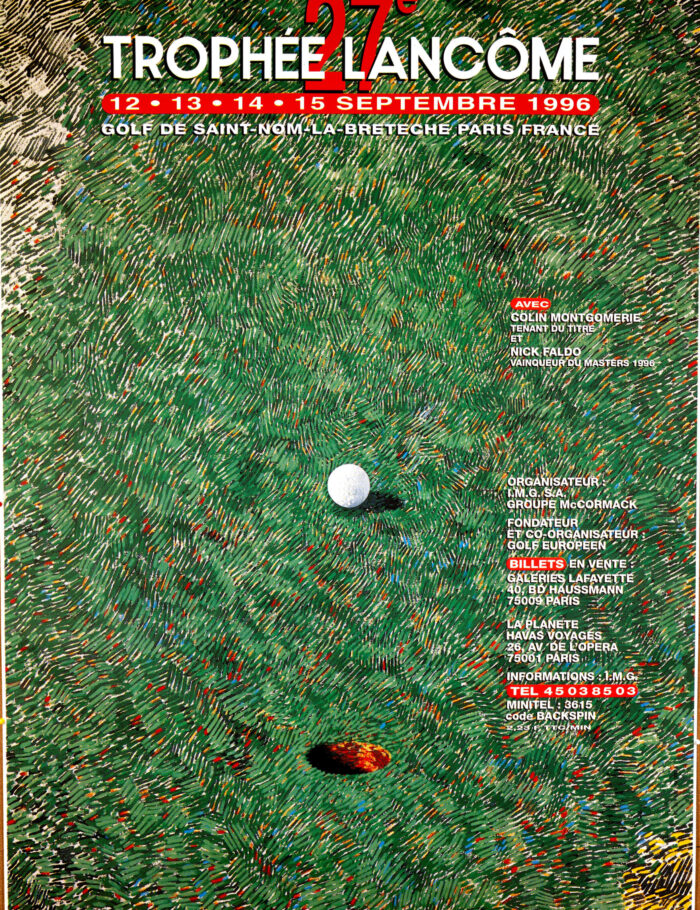 Henri Cueco—an acclaimed painter, writer, and co-founder of the Coopérative des Malassis artists’ collective—was known for his bold compositions and sharp sense of color. His design for the 1996 Trophée Lancôme reflects both artistic sophistication and the quiet focus of championship golf.