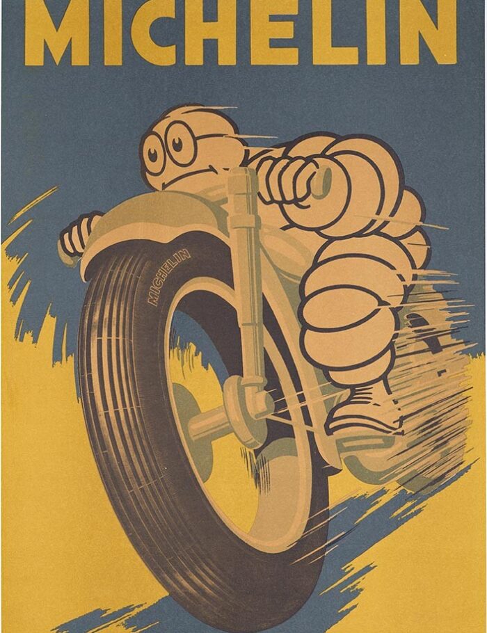 Bibendum MIchelin Motorcycle Tires 1950 ORIGINAL VINTAGE Italian POSTER